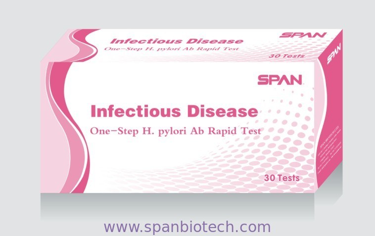 One Step H. Pylori Ab wb /serum/plasma test is a rapid test for the qualitative detection of antibodies specific to Helicobacter pylori in human serum/plasma and whole blood. In this test kit, the H. pylori antigen – colloid gold conjugate and specimen moves along the membrane chromatographically to the test region and forms a visible line as the antigenantibodyantigen gold particle complex forms with high degree of sensitivity and specificity. This one step test only takes about 1015 minutes. Test results are read visually without any instrumentation.